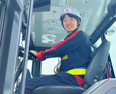 現在は空港で、お客さまの手荷物の搭降載をしたり、貨物専用機の誘導や貨物の積み降ろしをしたりと、多岐にわたる業務に関わっています。仕事をしていて嬉しい瞬間は、プッシュバック後にお見送りした機内から、お客さまが手を降ってくれる時ですね。現場経験を積み、いつかは空港オペレーションにも携わりたいです。